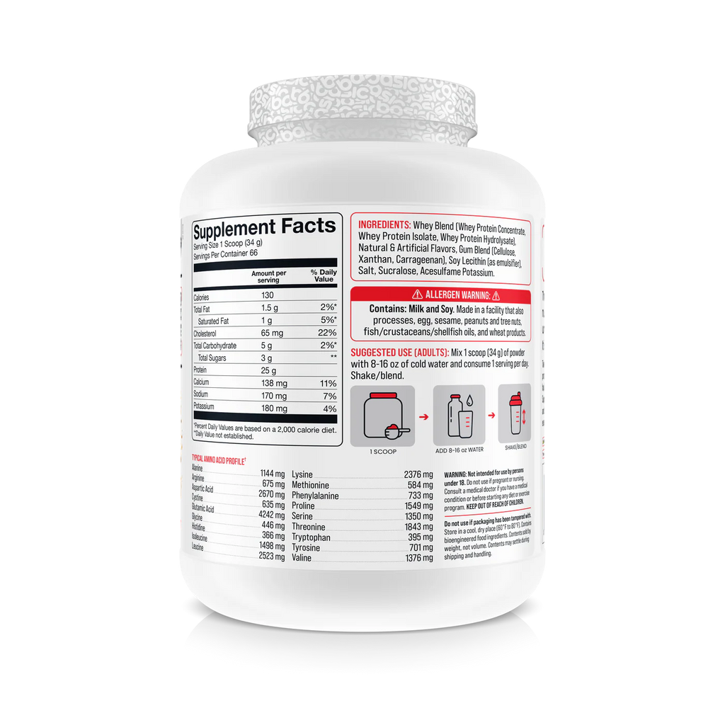 Reach your fitness goals with our Basic Superior Whey Protein Blend, ideal for post-workout recovery. It gives your body the essential nutrients it needs to build muscle, recover quickly, and stay healthy. Our blend is packed with high-quality protein and is easy to digest, making it perfect for anyone who wants to get back to basics with a no-B.S. approach!