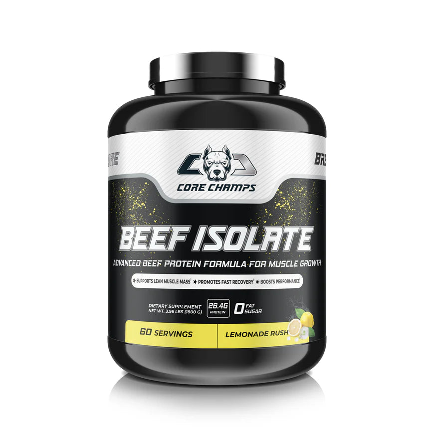 Fuel your training and support lean muscle development with Core Champs Beef Isolate, a high-quality beef protein isolate formula designed for athletes, gym-goers, and anyone looking to increase daily protein intake with a clean, effective supplement.